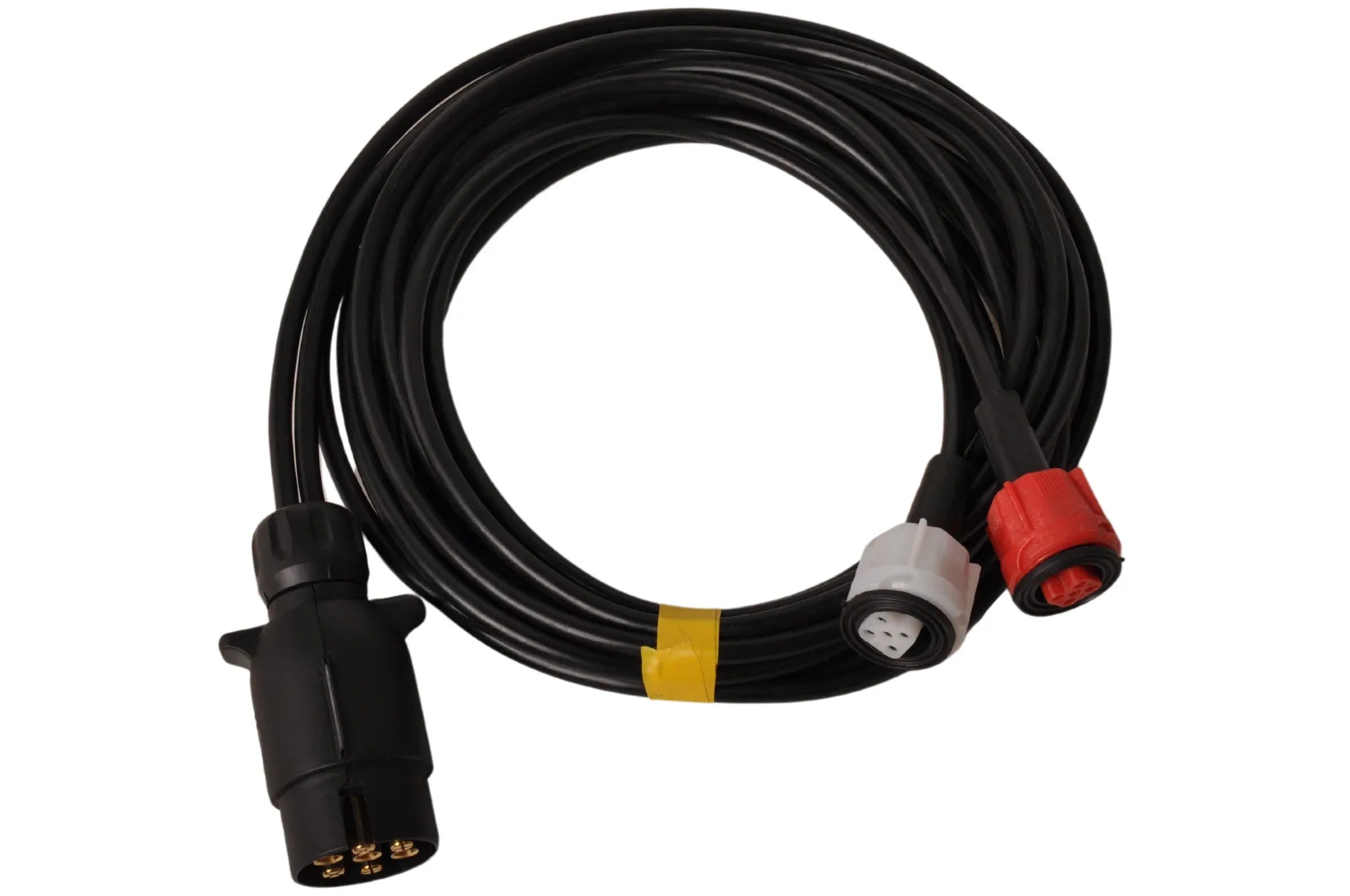 Dieses fünf Meter lange Anhängerkabel von Radex besteht aus zwei 5 Meter langen Kabeln, an die die 5-poligen Stecker angeschlossen sind. Der Stecker ist 7-polig.