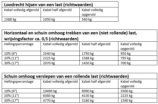Horizontales und schräges Ziehen einer (nicht rollenden) Last, Reibungsfaktor ca. 0,5 (Richtwerte)