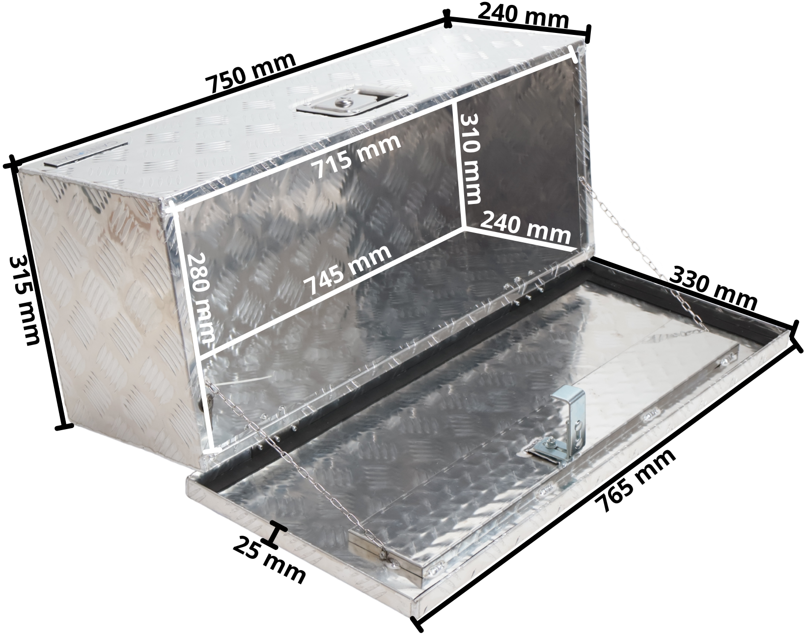 Alu Deichselbox mit Schloss - Aufbaubox - 76,5x33x24,5 cm