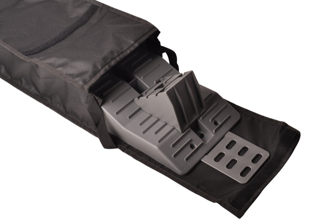 - 2 robuste Auffahrkeile/Leveller: Stufenförmige Keile mit mehreren Höhenniveaus (z. B. 4, 7 und 10 cm) und einer maximalen Tragkraft von 2500 kg pro Stück.