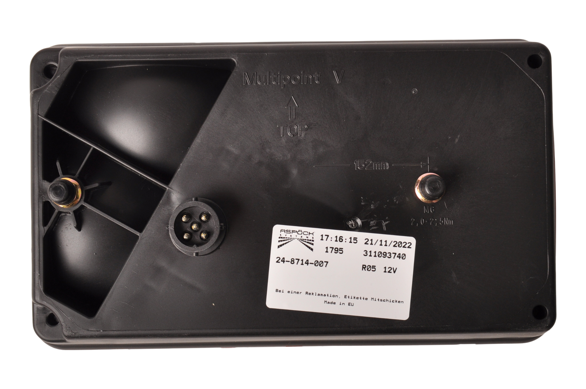 Der Multipoint 1 Rücklicht von Aspock wird seit 2011 standardmäßig bei Hapert, Saris und Henra Anhängern verwendet. Um die Stecker an der Einheit anzuschließen, ist ein Loch von 25 mm erforderlich.