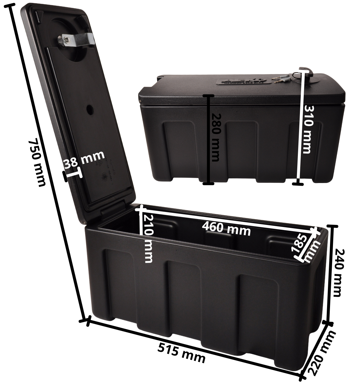 Technische Daten: AL-KO-Aufbau-Kunststoff Deichselbox - 515x220x280 mm - mit Seitenklappe