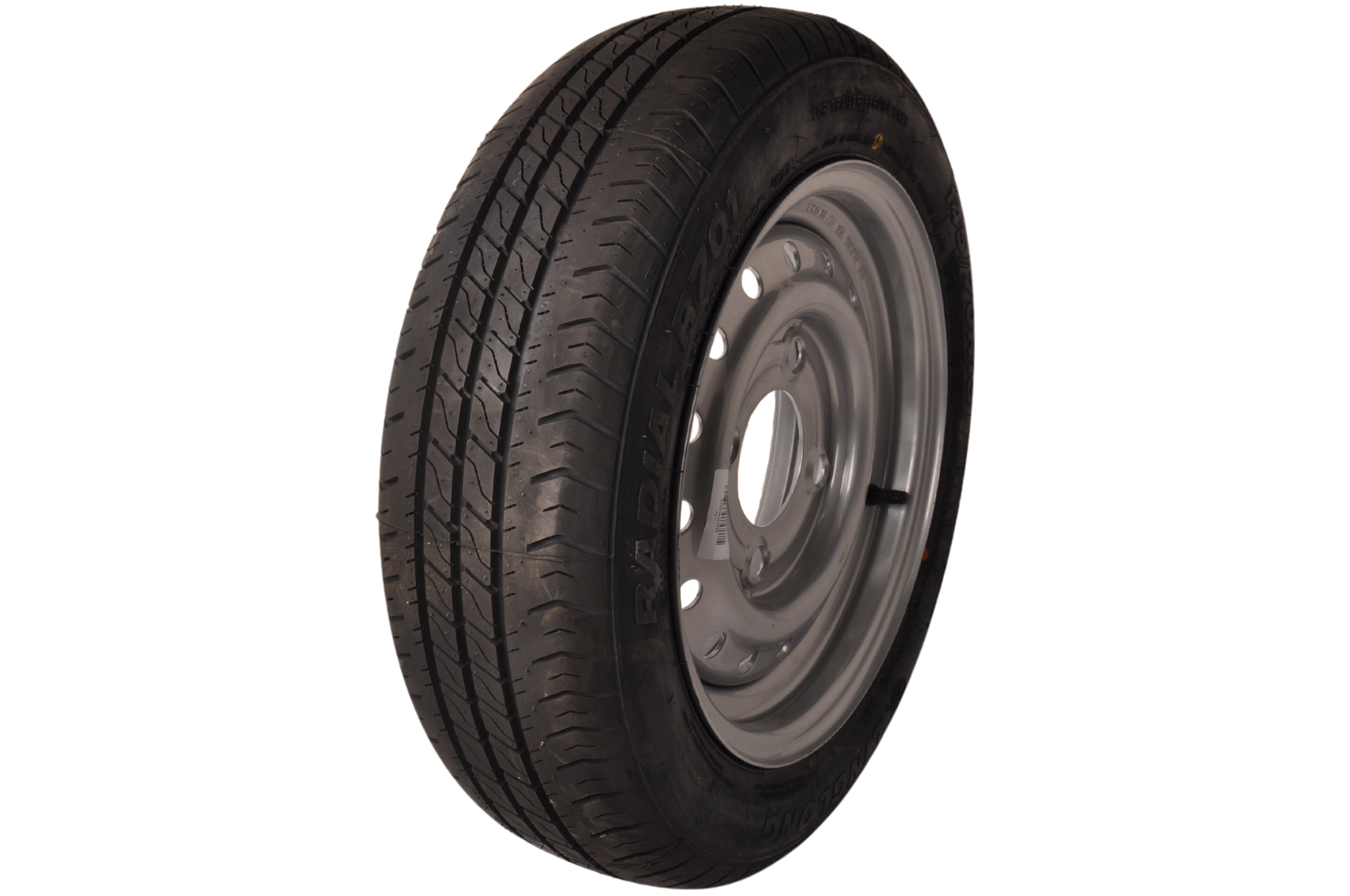 Dieses komplette 13-Zoll-Anhängerrad mit der Reifengröße 145/70 hat eine maximale Tragfähigkeit von 375 kg. Der Komplettraddurchmesser beträgt 53,4 cm und die Gesamtbreite 15 cm. Die Felge hat ein Lochmaß von 4x130 mm.