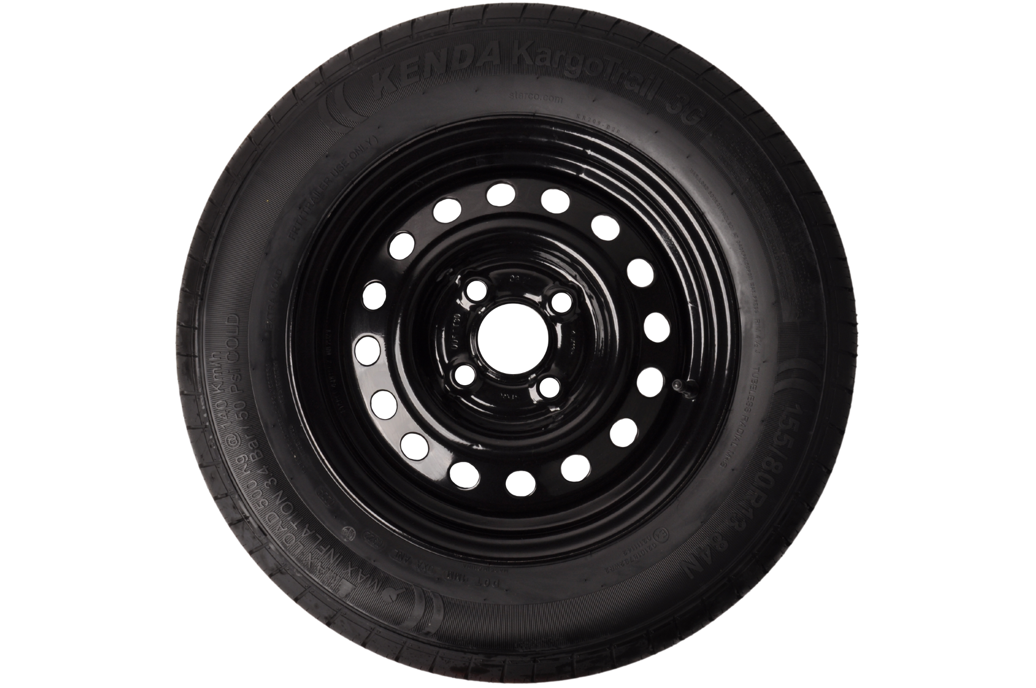 Dieses komplette 13-Zoll-Anhängerrad mit der Reifengröße 155/80 hat eine maximale Tragfähigkeit von 500 kg. Der Gesamtdurchmesser dieses Rades beträgt 57,8 cm und die Gesamtbreite 15,5 cm. Die Felge hat ein Lochkreis von 4x100 mm.
