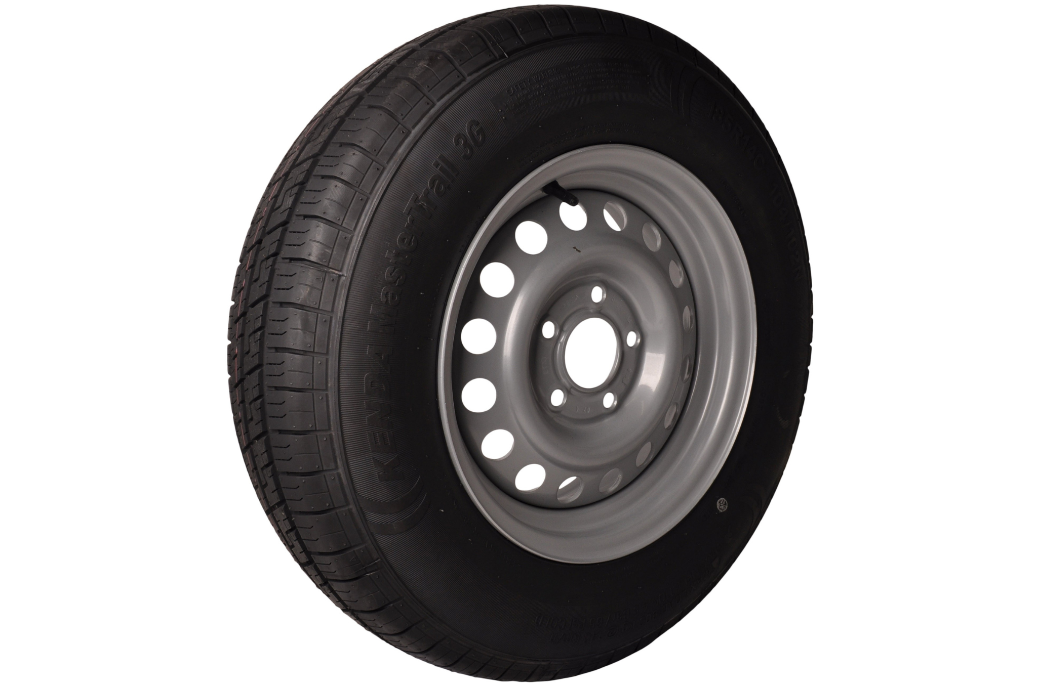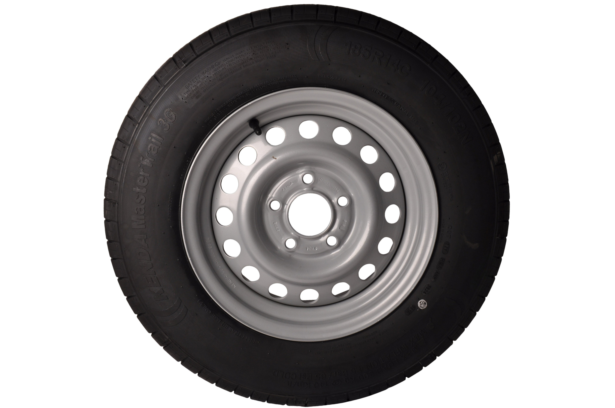 Dieses komplette 14 Zoll Anhängerrad mit der Reifengröße 185/80 hat eine maximale Tragfähigkeit von 900 kg. Der Gesamtdurchmesser des Rades beträgt 65 cm und die Gesamtbreite 18,5 cm. Die Felge verfügt über einen Lochkreis von 5x112 mm. Die Kennzeichnung C in der Reifengröße bedeutet, dass es sich um einen verstärkten Reifen mit hoher Tragfähigkeit des renommierten Reifenherstellers KENDA handelt.