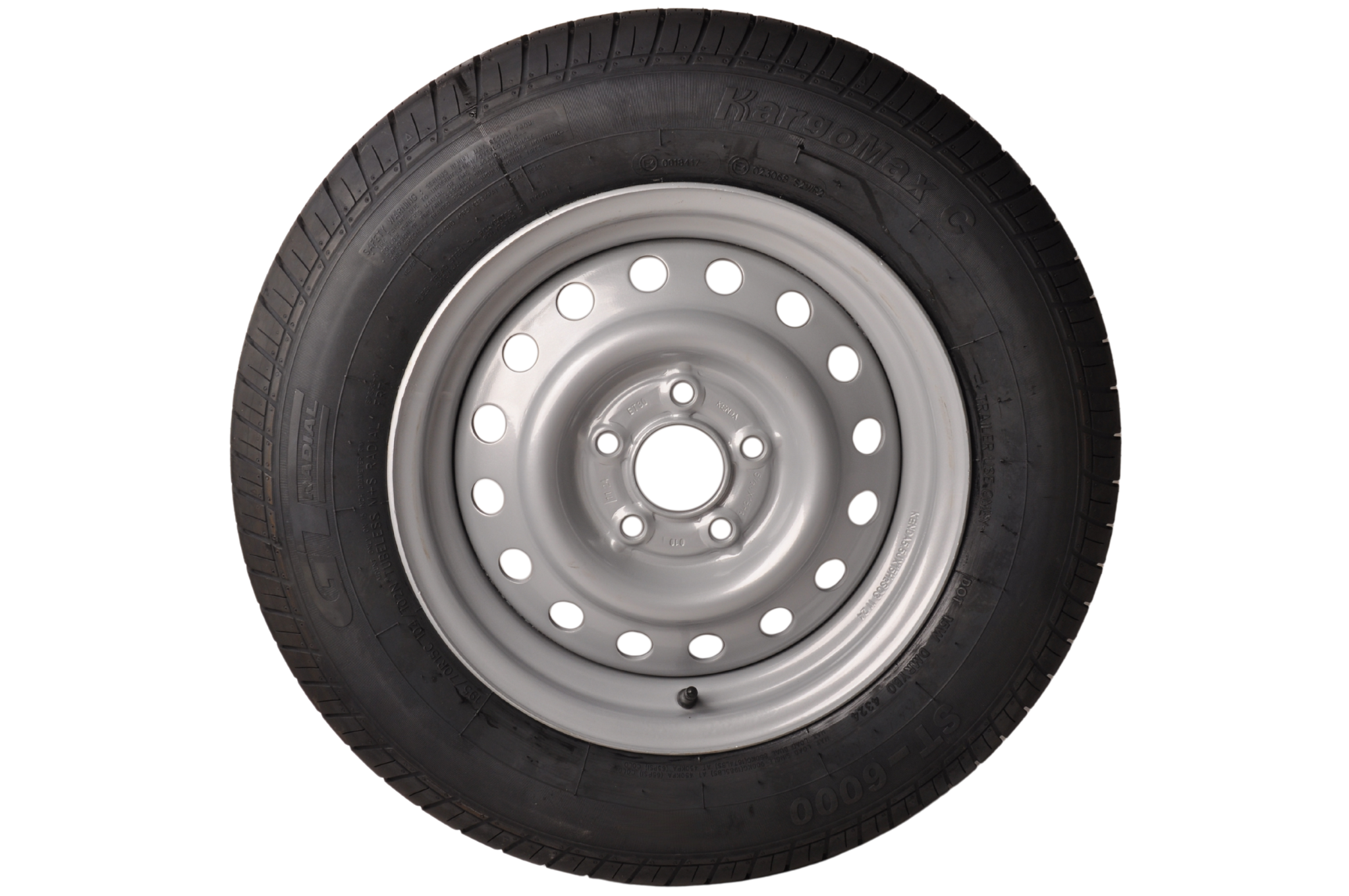 Dieses komplette 15-Zoll-Anhängerrad mit der Reifengröße 195/70 hat eine maximale Tragfähigkeit von 900 kg. Der Gesamtdurchmesser dieses Rades beträgt 65,5 cm und die Gesamtbreite 19,5 cm. Die Felge hat einen Lochkreis von 5×112 mm.