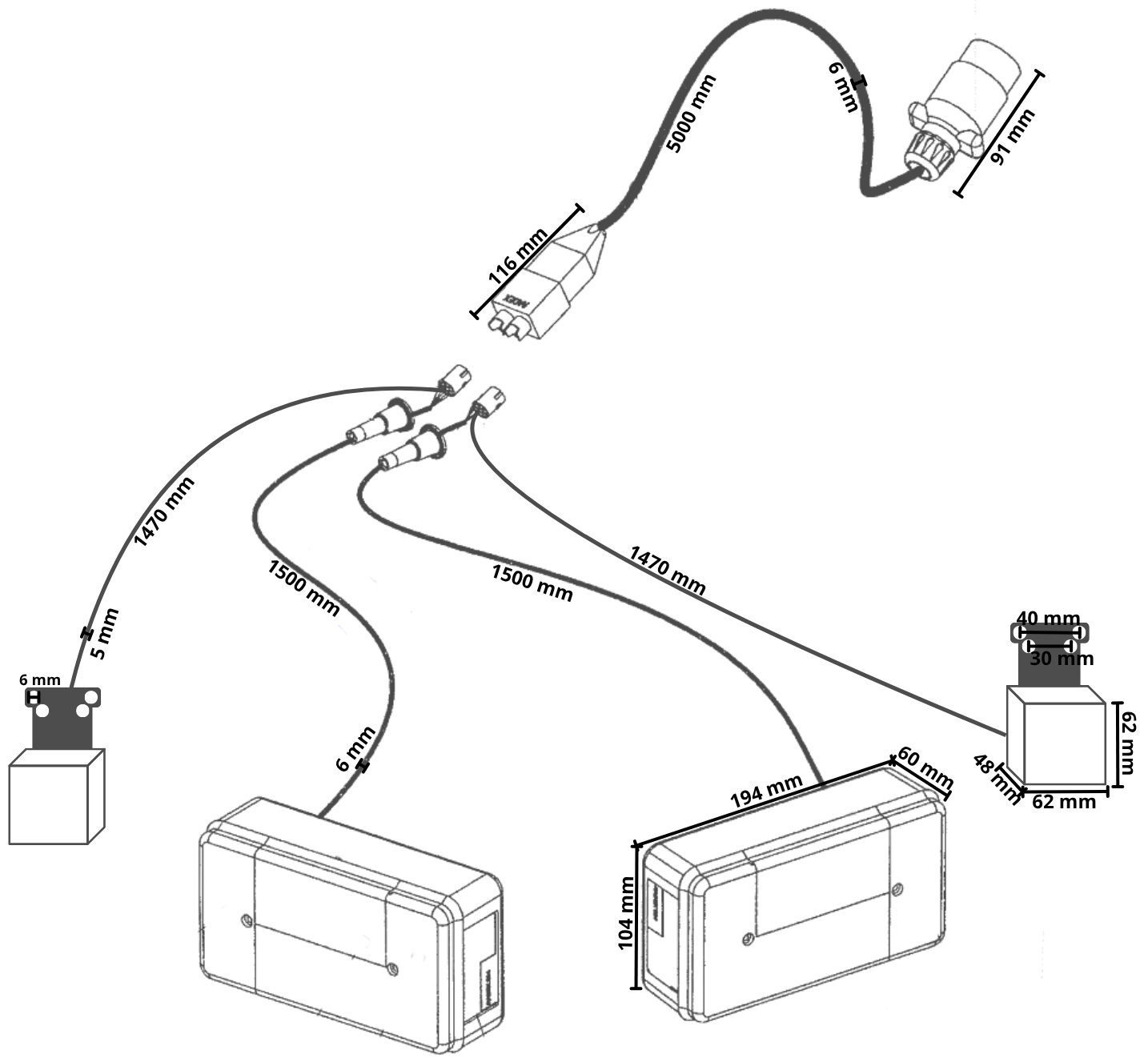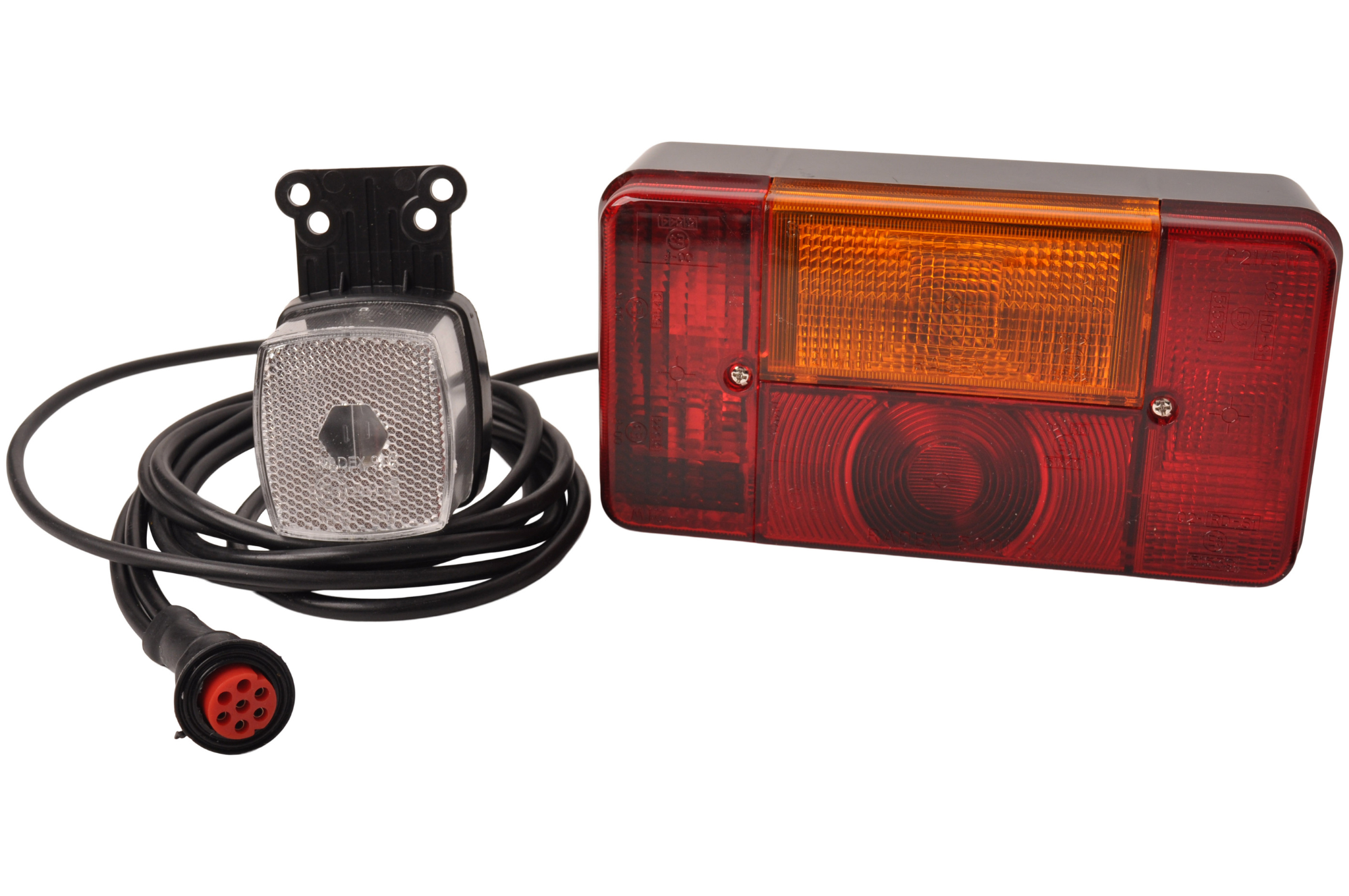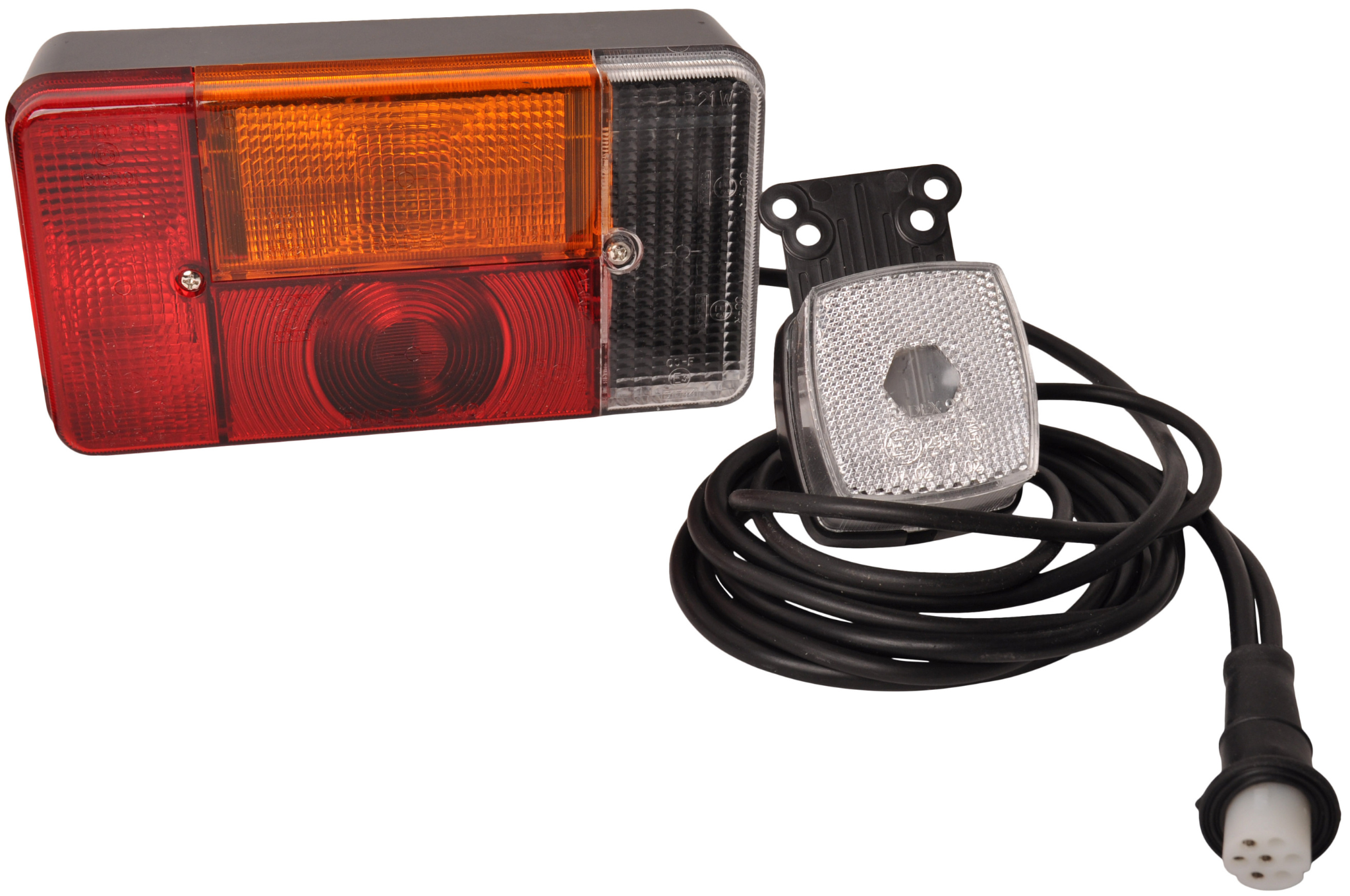 Radex 5001 Anhängerbeleuchtung set mit einem 5 Meter langen Hauptkabel mit 7-poligem Stecker. Dieses Set enthält Positionsleuchten.