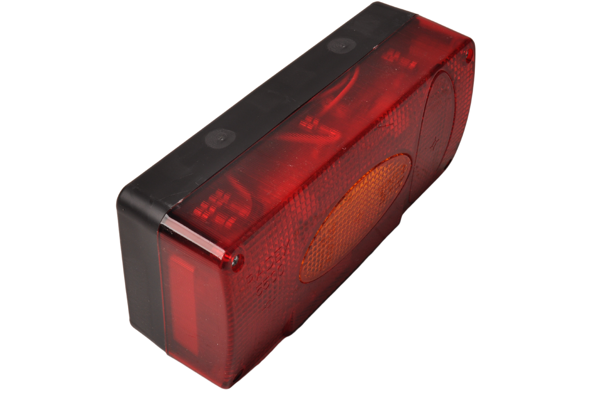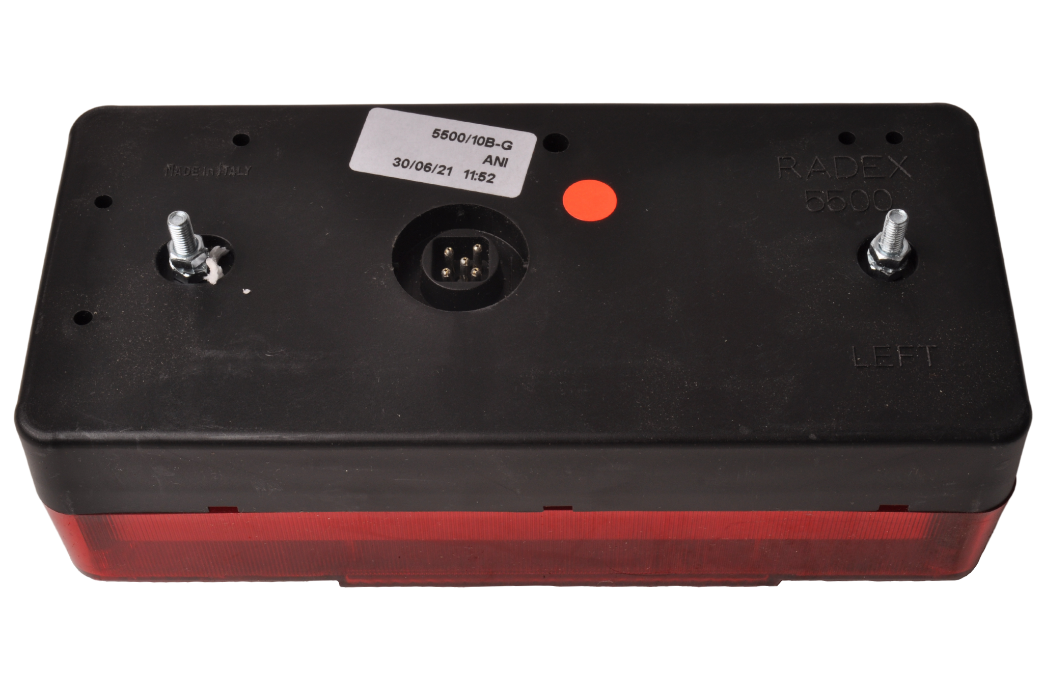 Radex 5500 Rücklicht links 216x98x70 mm mit Steckeranschluss. Für den Anschluss der Stecker an das Gerät ist eine Bohrung von 30 mm erforderlich.