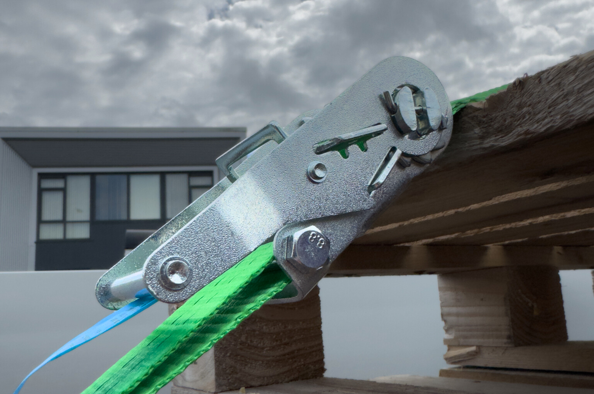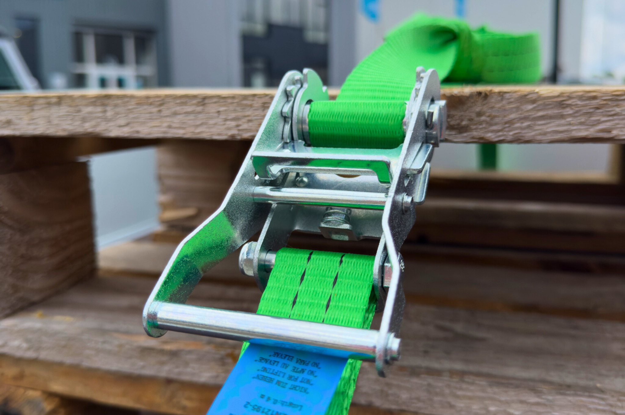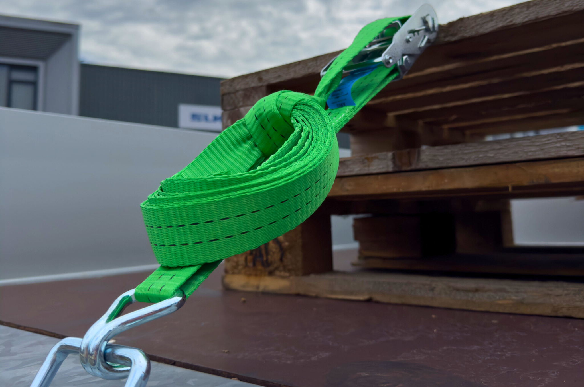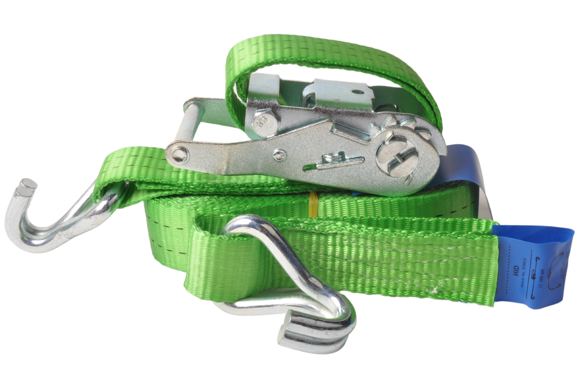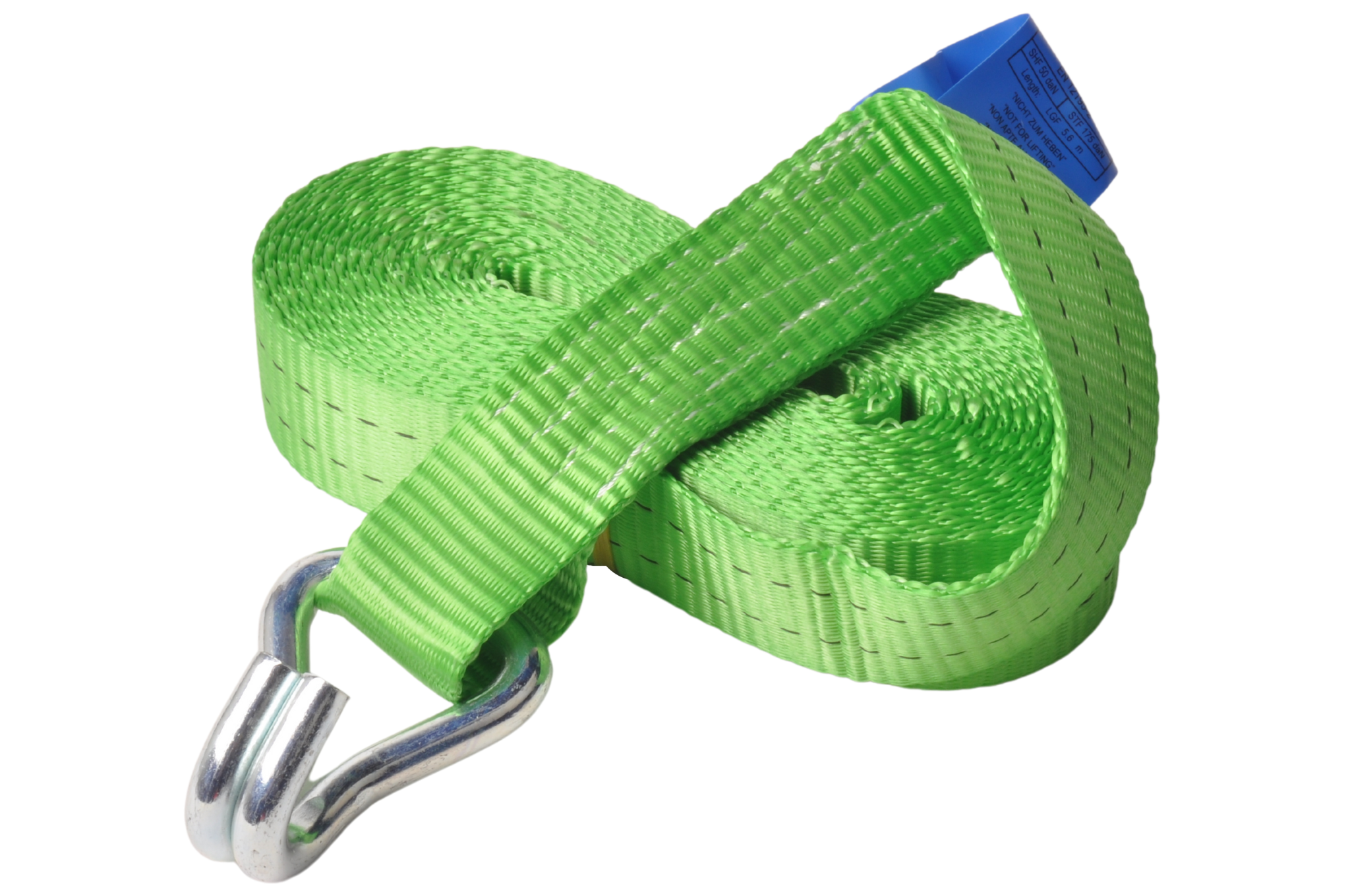 Dieser grüne Zurrgurt hat eine vertikale Tragfähigkeit von bis zu 1000 kg und eine Rundumzugkraft von bis zu 2000 kg. Dieser Zurrgurt wird mit einem losen Haken und einer Ratsche geliefert.