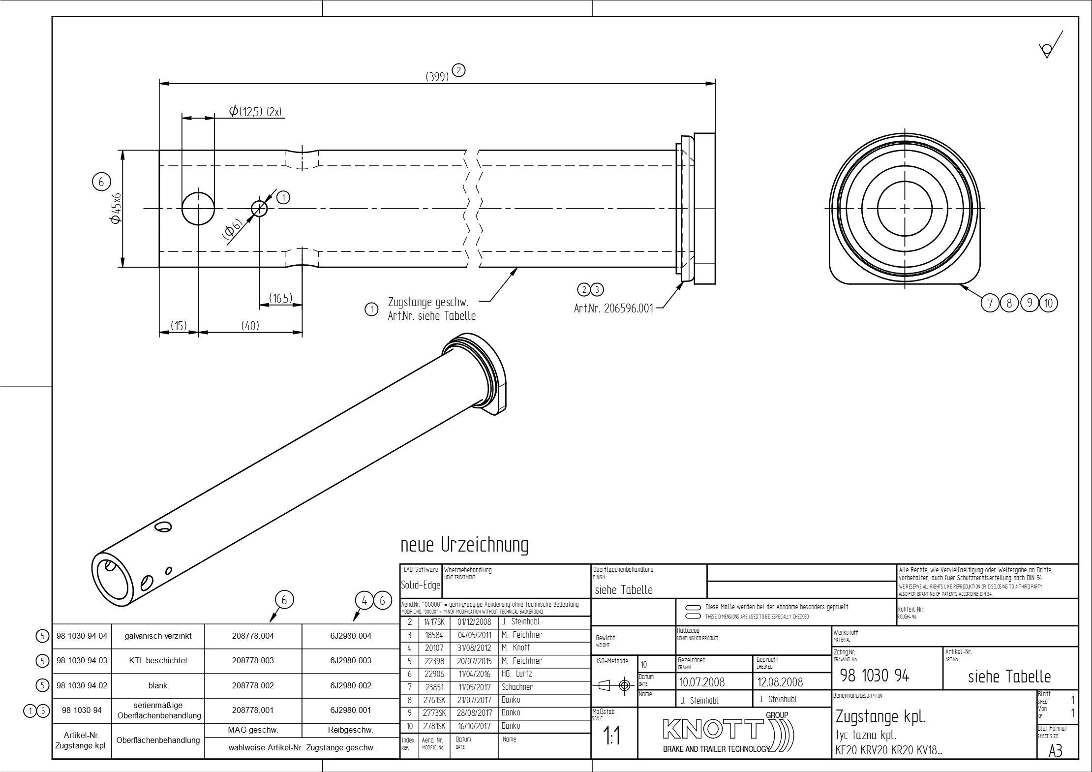 Knott Zugstange/Schubstange für Auflaufbremsen geeignet: KF7,5/KV13/KF20/KRV7,5/KRV20/KR13/82/KR20.