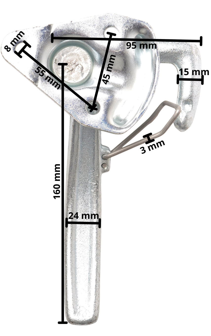 Winkelhakenverschluss RECHTS groß mit Feder (große Montageplatte)
