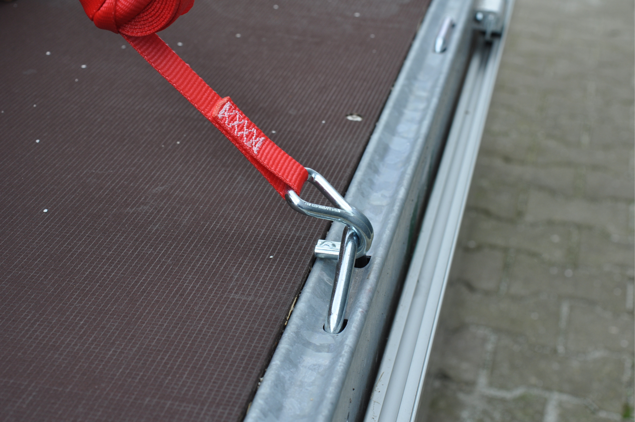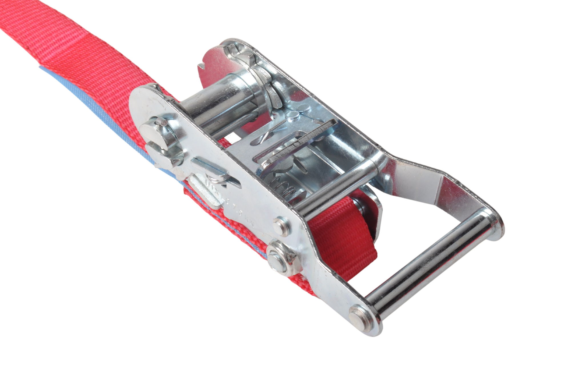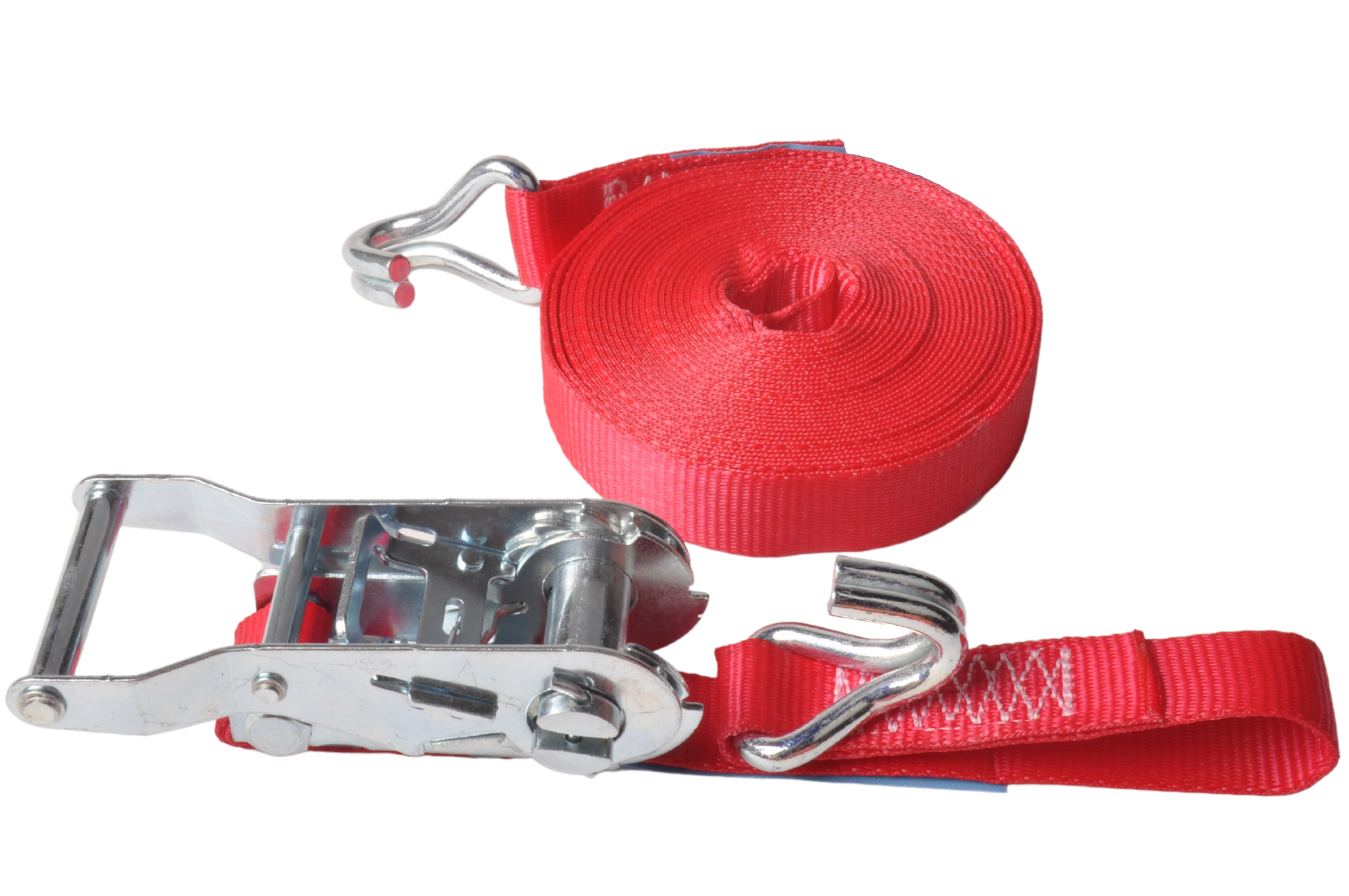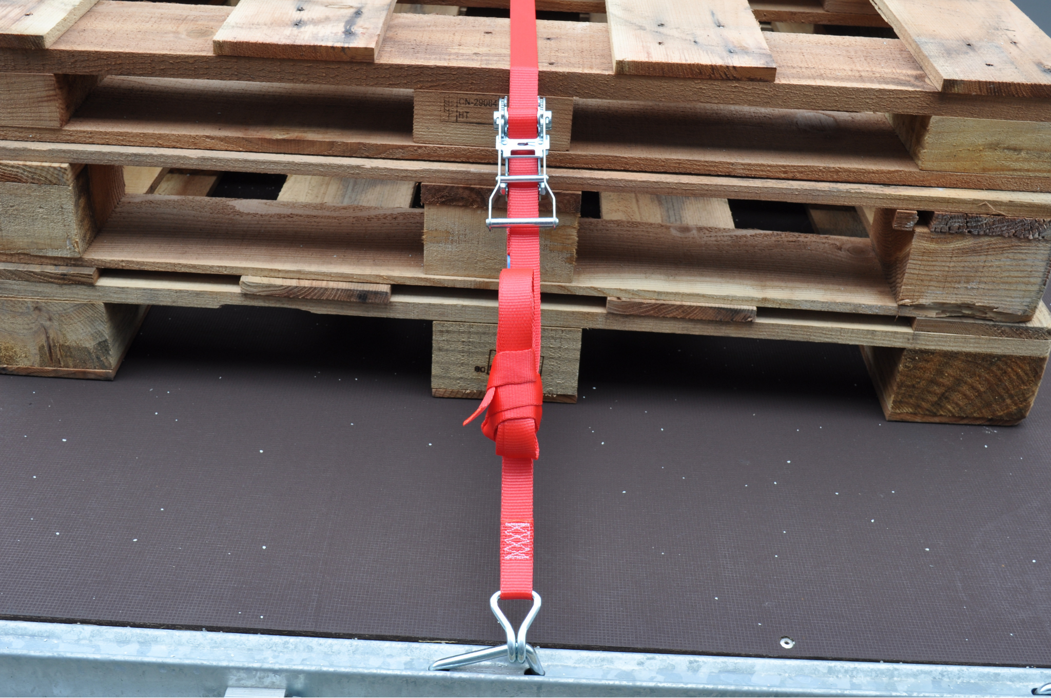 Dieses 7 Meter lange rote Spanngurt mit einer maximalen Bruchlast von 750 kg wird standardmäßig inklusive losem Haken und Ratsche geliefert.